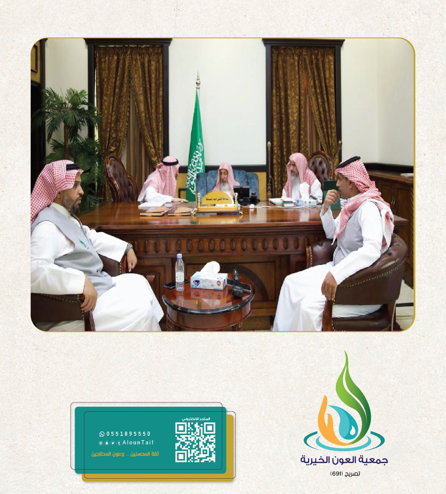 استقبل سماحة مفتي عام المملكة رئيس هيئة كبار العلماء رئيس اللجنة الدائمة للبحوث العلمية الشيخ عبدالعزيز بن عبدالله آل الشيخ بمقر الرئاسة العامة للبحوث العلمية والإفتاء في الطائف رئيس مجلس إدارة جمعية العون الخيرية الدكتور محمد القريني والوفد المرافق له الذين قدموا للسلام على سماحته ، واستمع سماحته إلى شرح عن أعمال الجمعية والجهود التي تقوم بها الجمعية وفي ختام اللقاء أثنى سماحته على جهود الجمعية وما تقدمه من خدمات ودعا لهم بالتوفيق والسداد .
