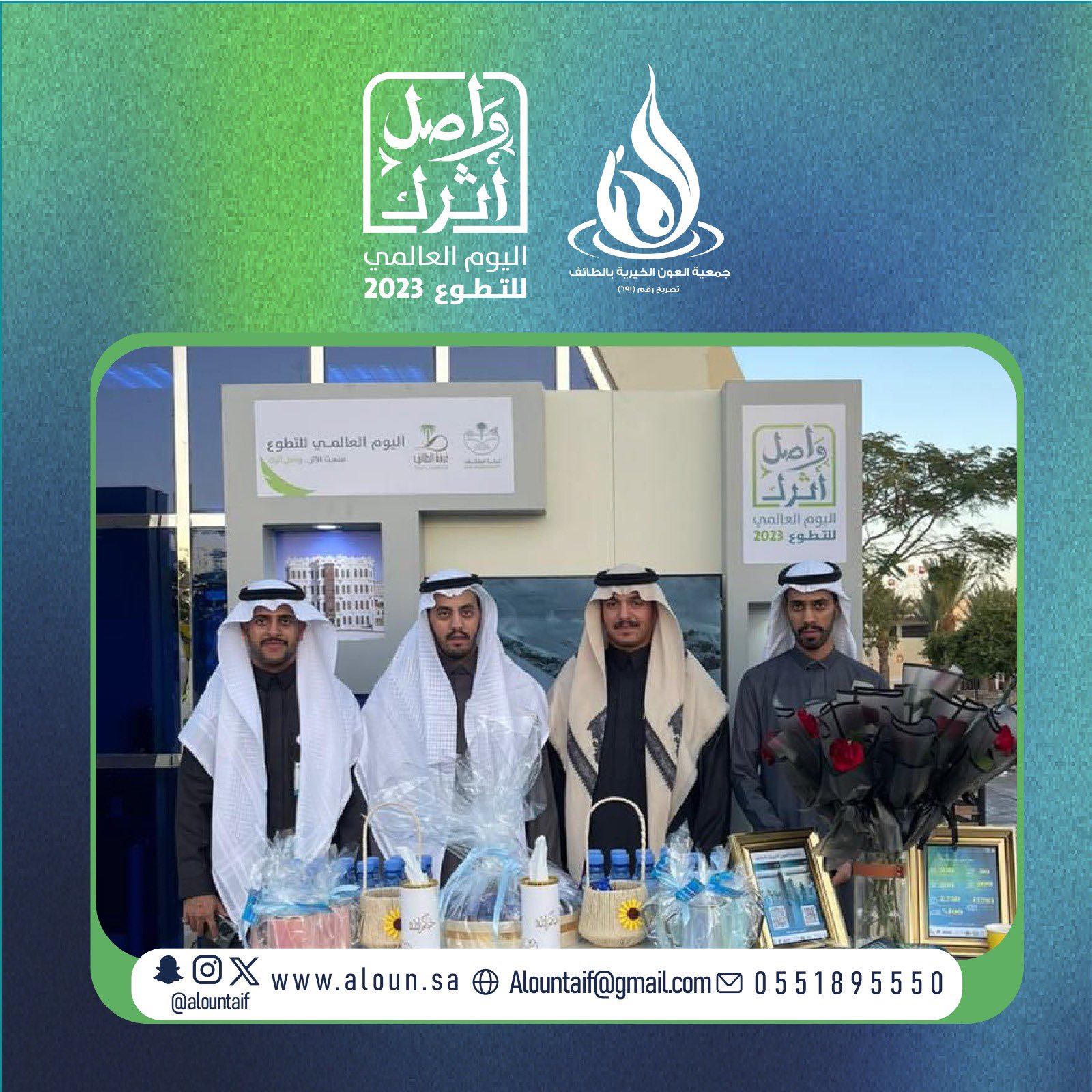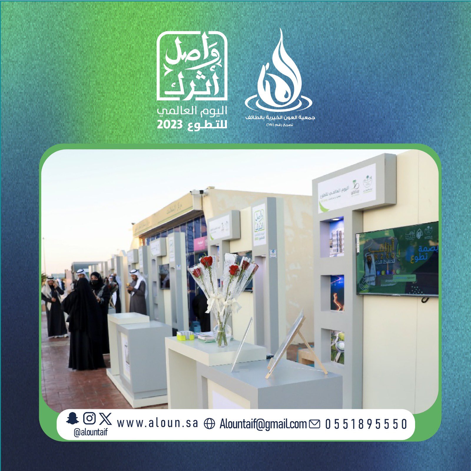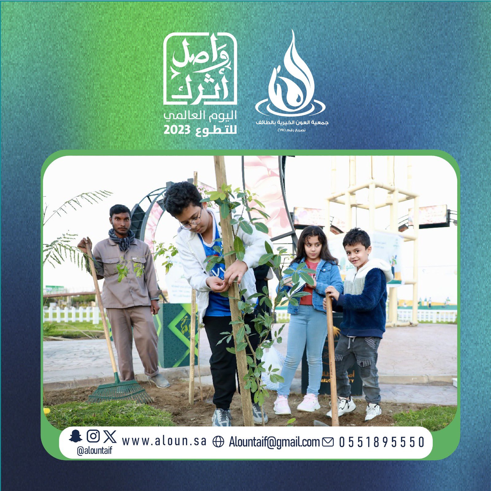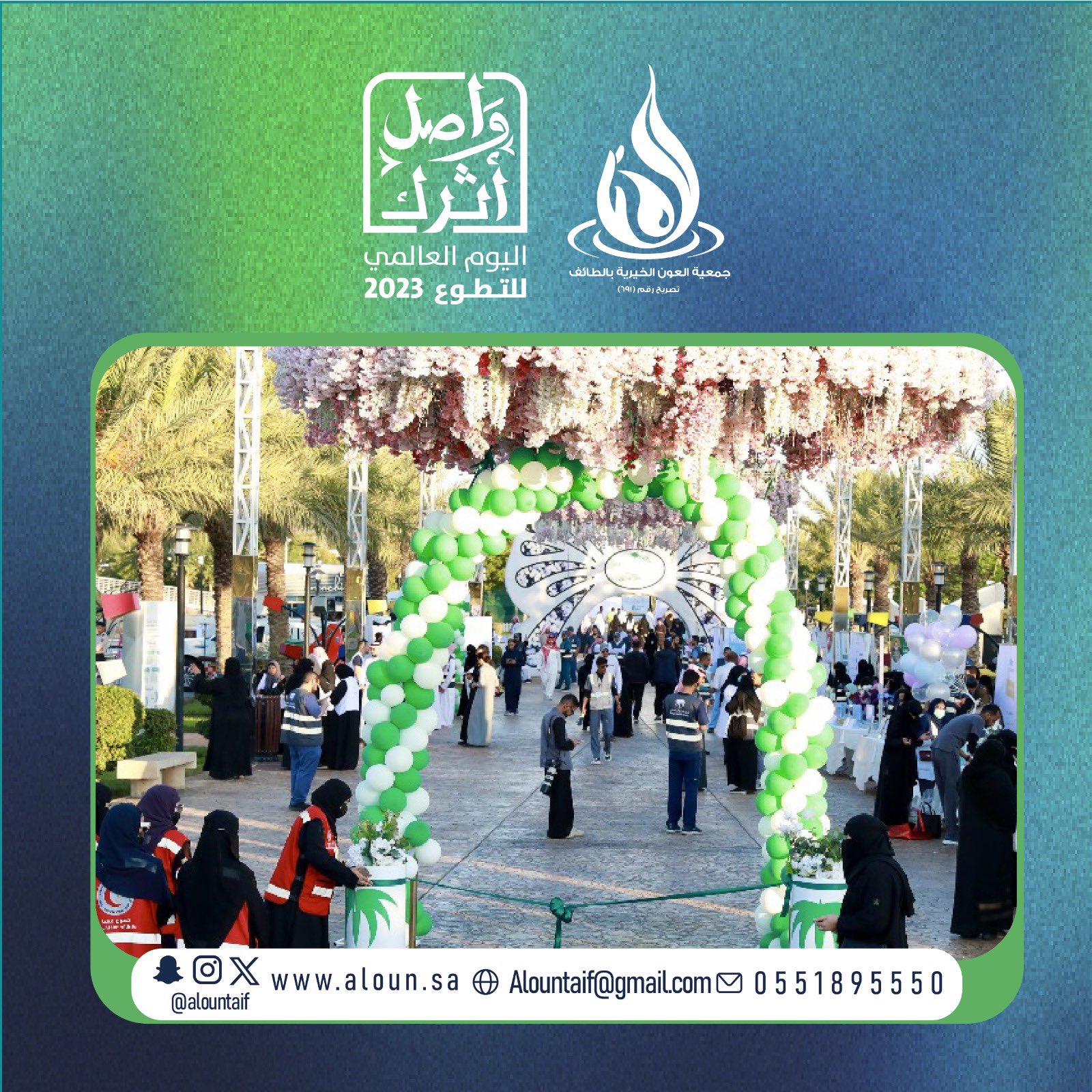 بالتعاون مع أمانة الطائف احتفت العون بيومها التطوعي السعودي وذلك بإطلاق مبادرات وفعاليات شارك فيها 1300 متطوع ومتطوعة سعيًا في تعزيز المسؤولية الاجتماعية وغرس قيم التطوع السامية لتحقيق رؤية المملكة نحو المليون متطوع .