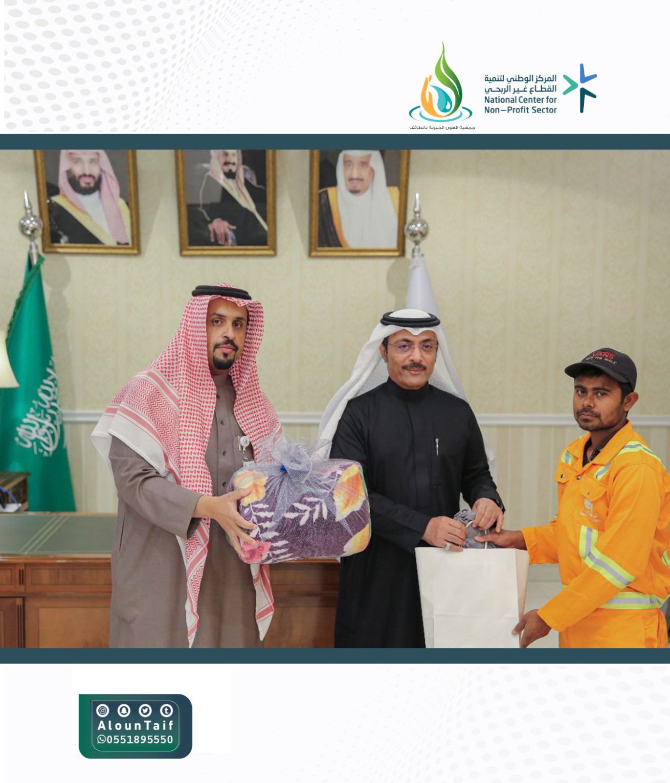 دشن #أمين_الطائف المهندس عبدالله الزايدي مبادرة الحقيبة الشتوية “شتائهم دافئ” والتي استهدفت حراس الأمن وعمال النظافة في الدوائر الحكومية والخاصة والأماكن العامة بمشاركة الجمعية وفريق ظل التطوعي لنمنحهم شتاء دافئ.